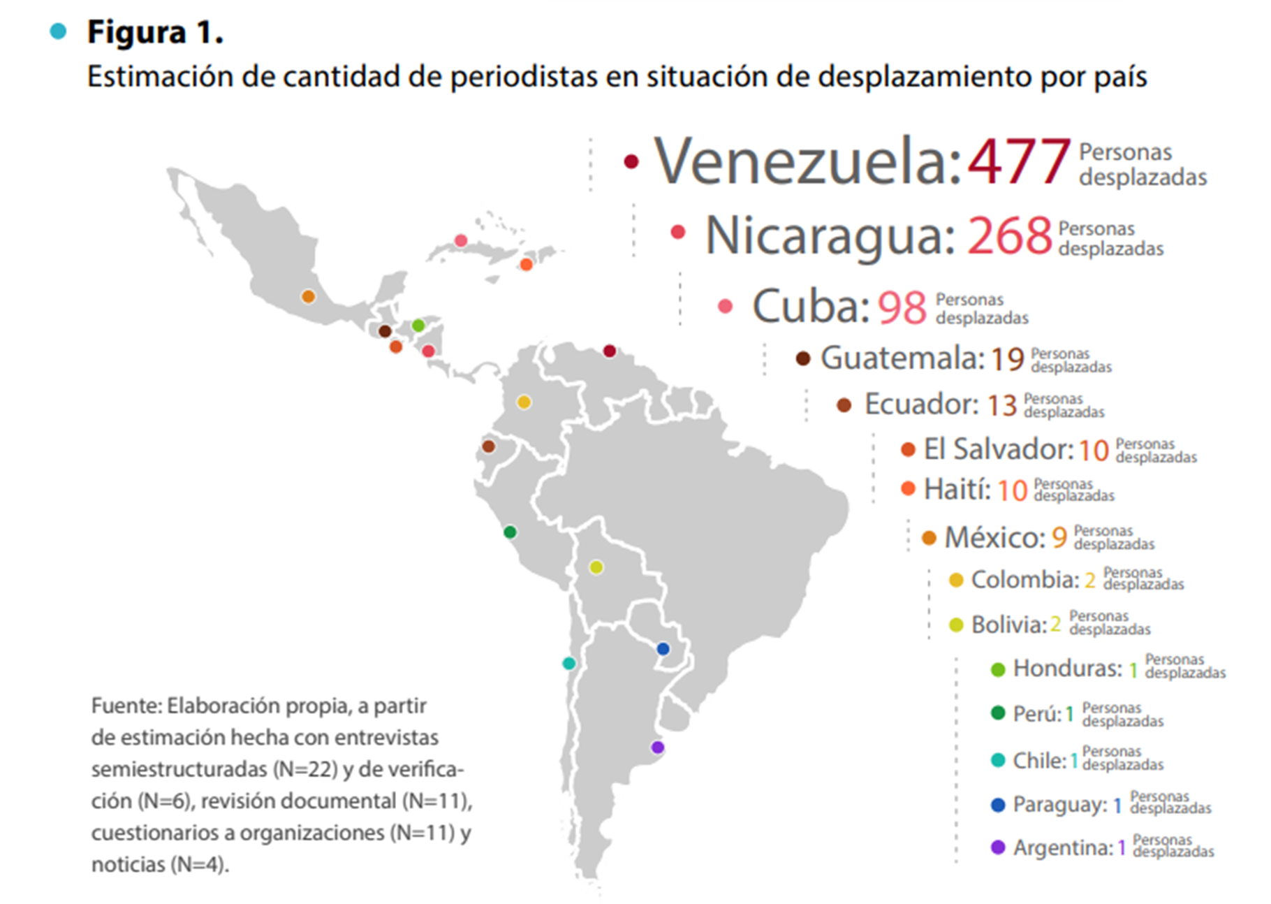 El documento aclara que los datos recogen únicamente los casos de desplazamiento forzado por motivos estrictamente relacionados con el ejercicio del periodismo. No incluye a quienes han emigrado por otras razones políticas, económicas o sociales, lo que indica que la cifra real de periodistas venezolanos en el exilio podría ser considerablemente mayor.